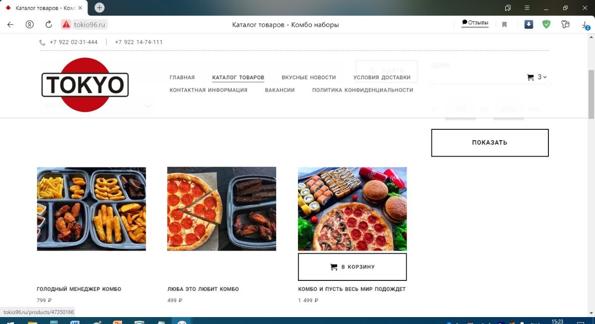 1. Открыть сайт tokio96.ru и перейти в меню http://tokio96.ru/products